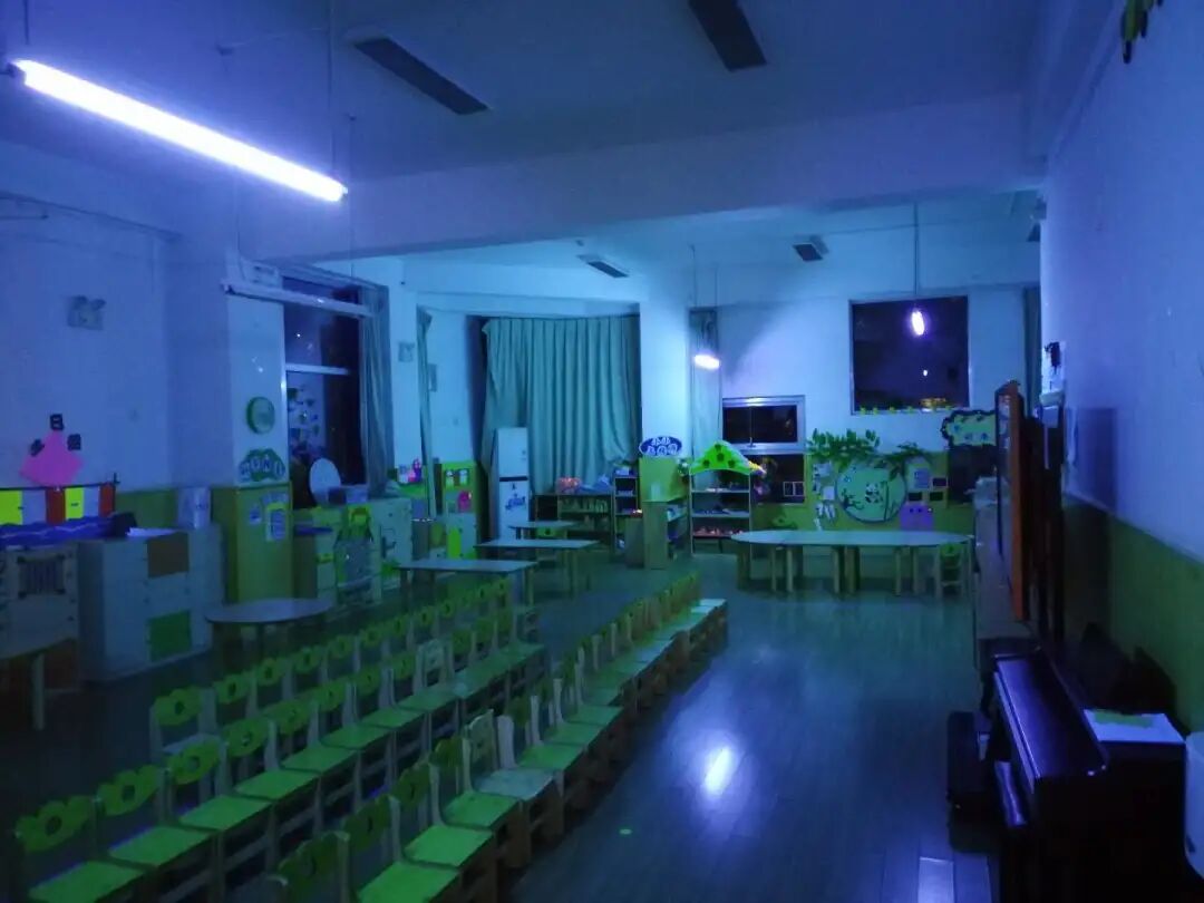 2.幼儿园内基本上涉及到的是室内悬挂式紫外线消毒灯,一般紫外线灯安装的高度为2-2.5米高度,照射时间一般为30min-1h。