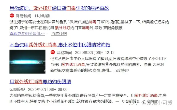 于是赶紧前往到医院眼科就诊。经医生检查发现其眼角膜上皮损伤,出现眼睑刺激征,导致结膜水肿、眼睑水肿、双眼红肿,确实是由于紫外线灯使用不当,紫外线照射眼睛,导致的电光性眼炎。方女士的案例并不是个案,因紫外线灯使用不当而造成损伤的案例近期频发: