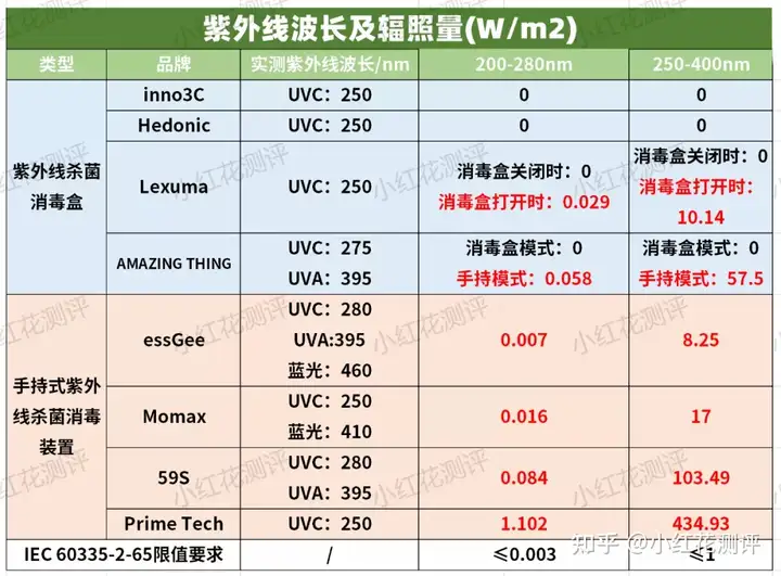 而Lexuma的盒盖被完全打开时,紫外线灯仍然开启,不同波长范围下的辐照量为0.029W/m2、10.14W/m2,分别是参考限值的9倍、10倍。