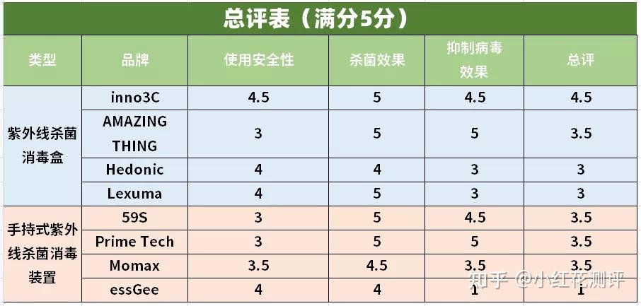 综合使用安全性、杀菌消毒效果,对8款产品进行评分,得出最终分数如下: