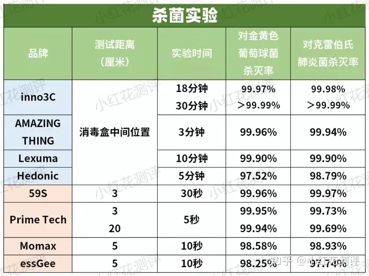 2.两款产品的杀菌率略低于宣称值。