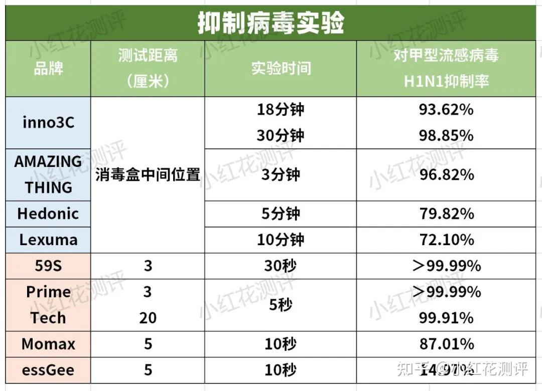 4款产品杀菌率≥99.9%,抑制病毒表现差异大