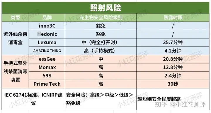 3.四款产品的光生物安全风险为高级,暴露时限较短。