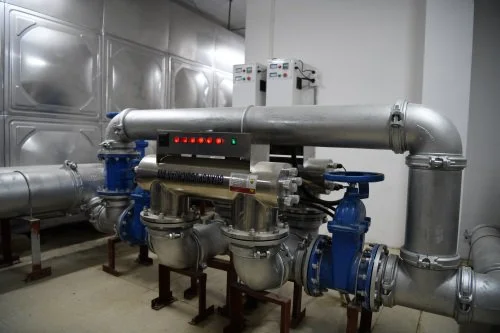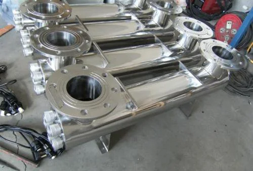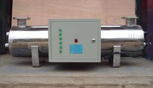 封闭式紫外线消毒器属承压型,用金属筒体和带石英套管的紫外线灯把被消毒的水封闭起来。筒体常用不锈钢或铝合金制造,内壁多作抛光处理以提高对紫外线的反射能力和增强辐射强度,还可根据处理水量的大小调整紫外灯的数量。有的消毒器在筒体内壁加装了螺旋形叶片以改变水流的运动状态而避免出现死水和管道堵塞,所产生的紊流以及叶片锋利的边缘会打碎悬浮固体,使附着的微生物完全暴露于紫外线的辐射中,提高了消毒效率。