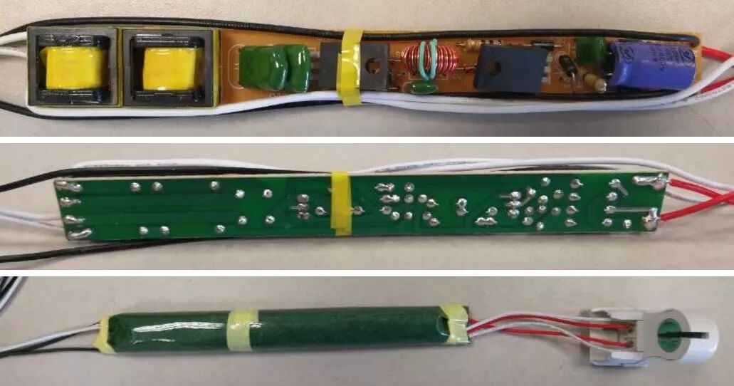 (结构简单且没有任何认证标识的驱动器,仅用绝缘纸包裹,或胶带缠绕固定的配件)