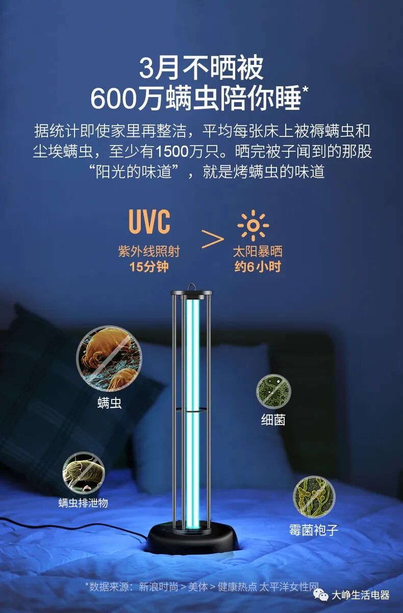 说到底,消毒还是紫外线灯简单高效,杀菌消毒除螨三合一