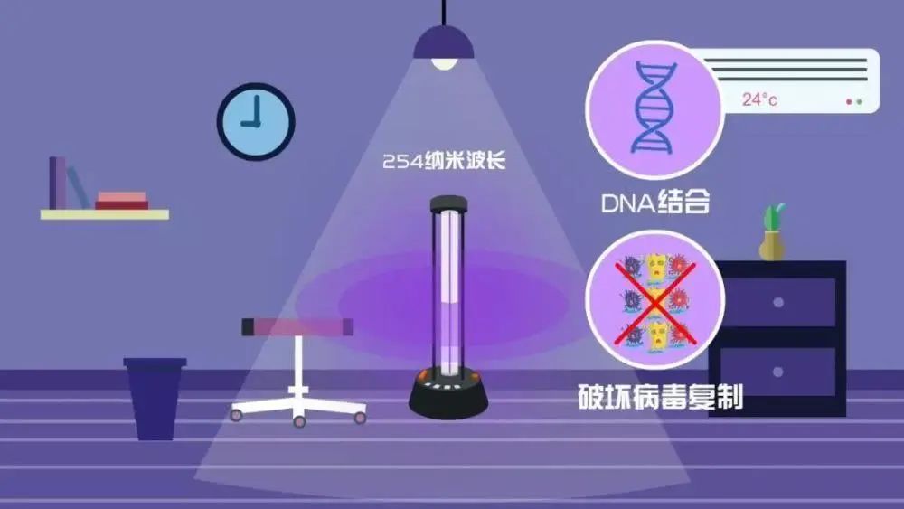 紫外线是一种低能量的电磁辐射,紫外线消毒原理是通过破坏DNA结构,使之失去繁殖和自我复制的功能从而达到杀菌消毒的目的。新型冠状病毒也是通过RNA进行自我复制,紫外线同样能够干扰它的核酸复制,从而起到消毒效果。