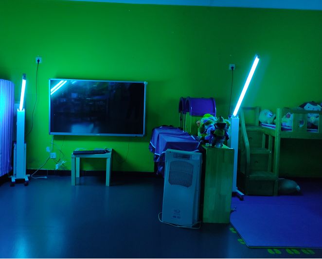 紫外线消毒灯每周由保育员老师进行消毒擦拭,使用酒精进行灯管全方位擦拭,保证灯管的光泽度以及杀菌性。
