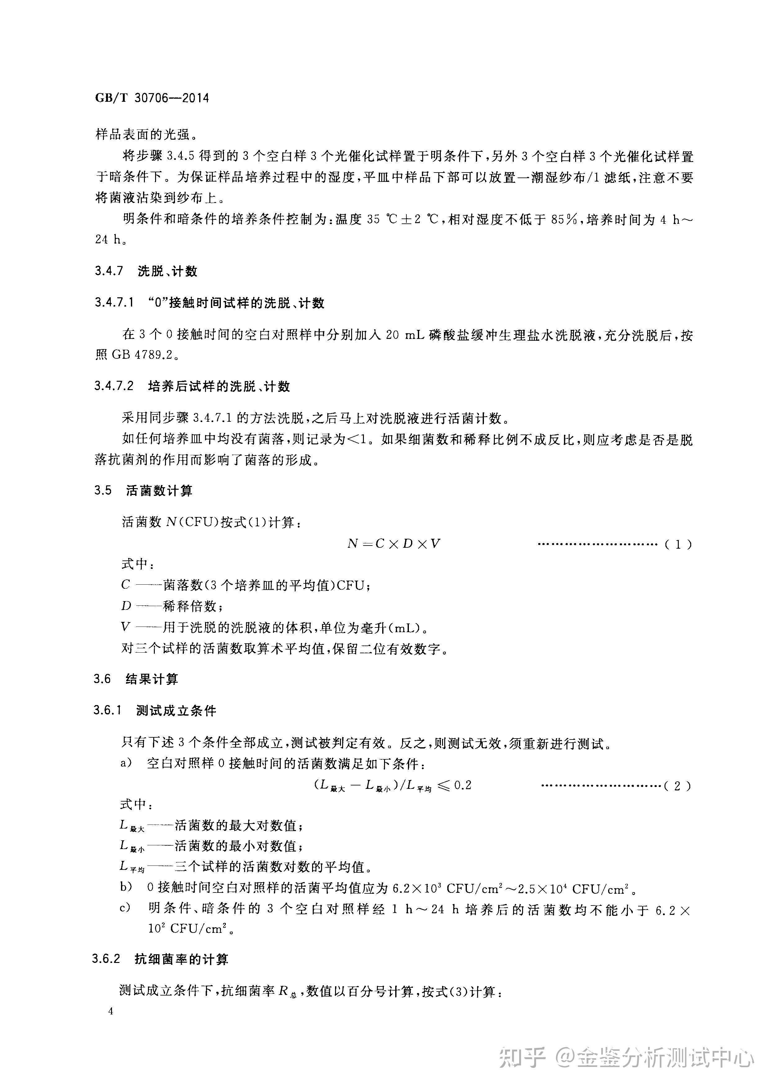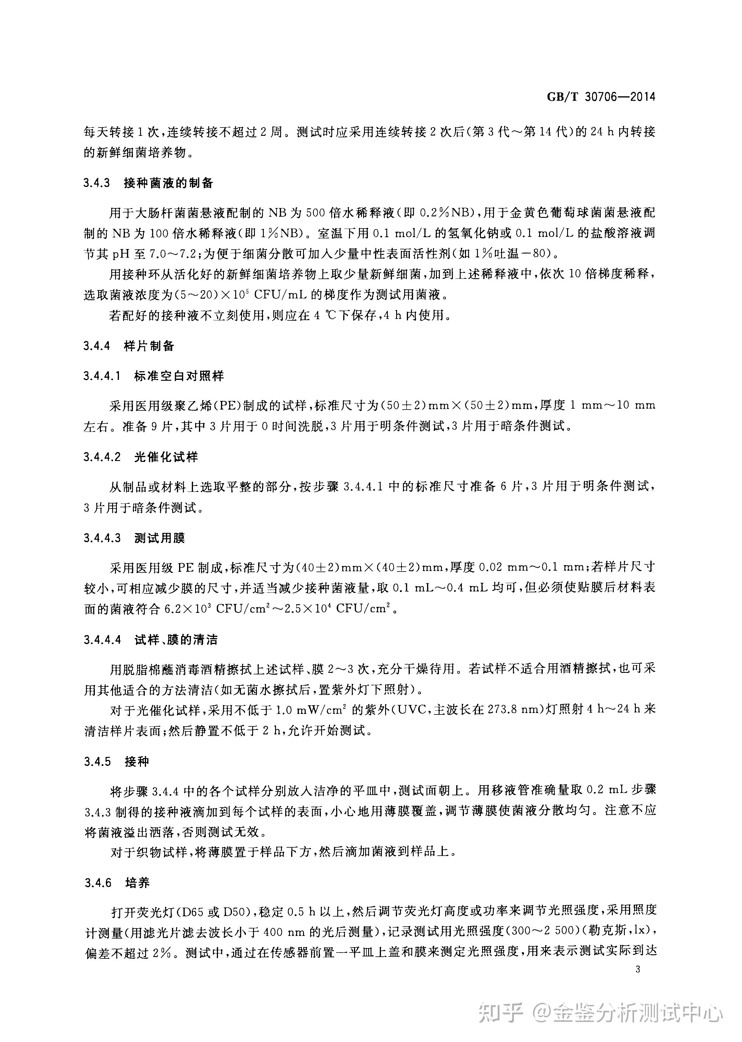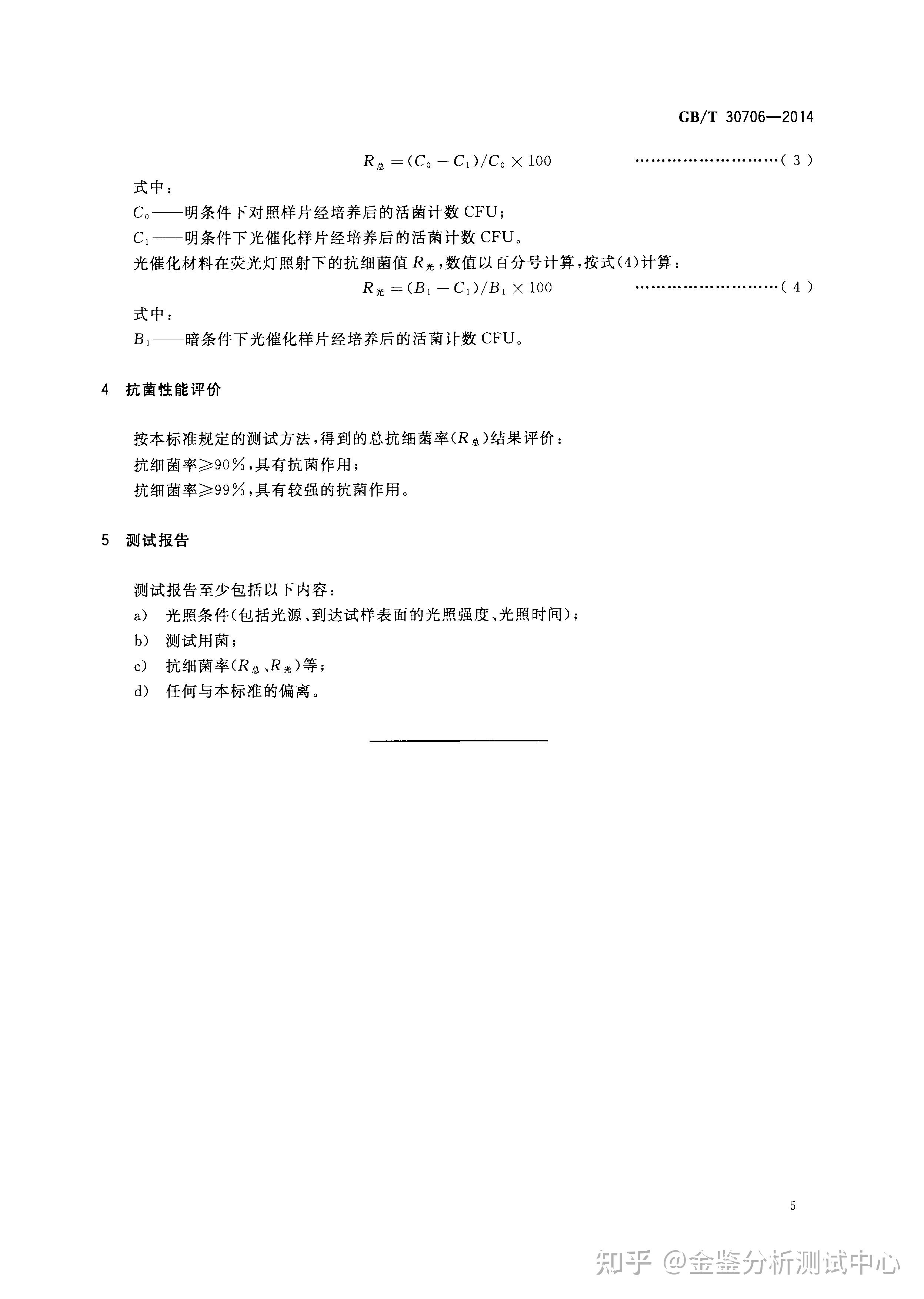 五、参考标准:可见光照射下光催化抗菌材料及制品抗菌性能测试方法及评价(GBT/30706-2014)